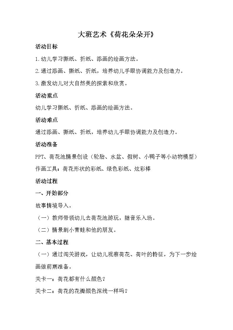 大班艺术《荷花朵朵开》教案.docx